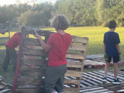 Cub Scout Troop 812 worked alongside our congregation to get everything pre-set. They worked so fast, I almost missed it. It was an incredible sight to see these young people, their parents, and our church members all working along side each other. They moved pallets and put up all the decorations so things were ready for the pumpkin drop.