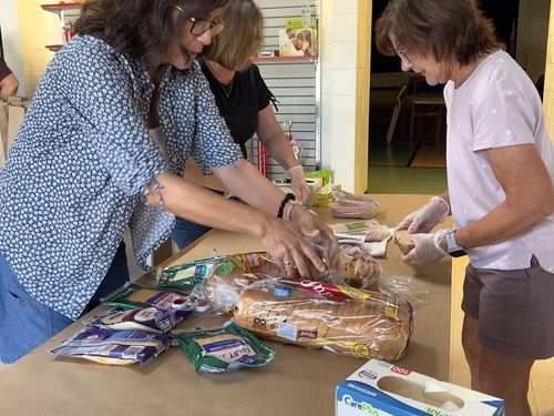 Then Bags are prepared for the sandwiches, chips, and condiments. People drive up in their cars, we take orders, then deliver what they request. It's drive-through service with a smile. The hope is that all the food will be given away, but any leftovers are delivered to an extended stay hotel in Orange Park for their residents.