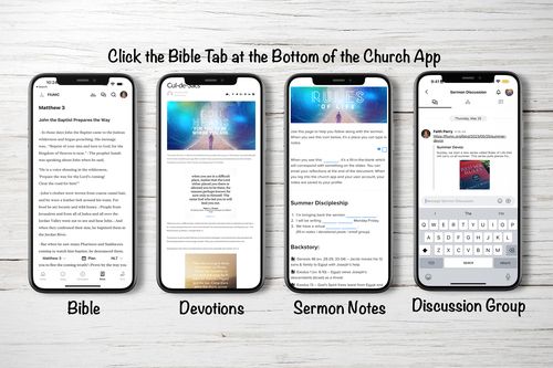 If you'd like to join other people to talk about the sermon, devotions, or book, there is a message group within the church app. To join the group, Open the app and click the message icon on the top of the screen. If you have any issues, just let me know.