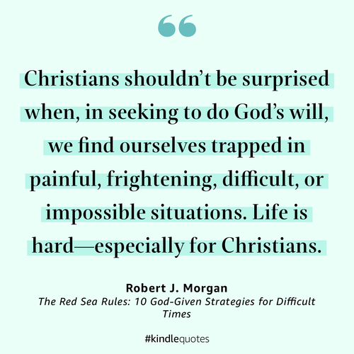 "Christians shouldn't be surprised when, in seeking to do God's will, we find ourselves trapped in painful, frightening, difficult, or impossible situations. Life is hard—especially for Christians. "–The Red Sea Rules, by Robert J. Morgan (Rule 1)
