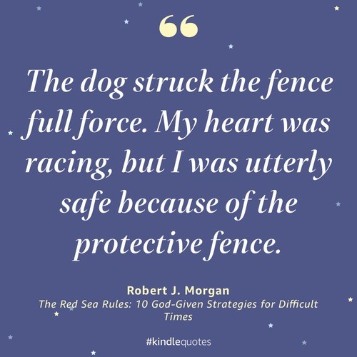 “I was so startled that as it lunged at me, I screamed and jumped backward. But between me and my would-be attacker, there was a chain-link fence. The dog struck the fence full force. My heart was racing, but I was utterly safe because of the protective fence.” –The Red Sea Rules, by Robert J. Morgan (Rule 3)