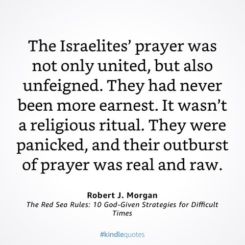 “The Israelites’ prayer was not only united, but also unfeigned. They had never been more earnest. It wasn’t a religious ritual. They were panicked, and their outburst of prayer was real and raw.” –The Red Sea Rules, by Robert J. Morgan (Rule 4)