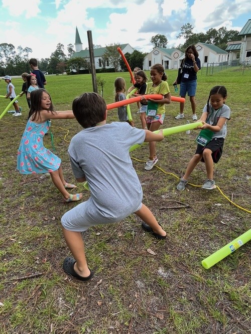 During games, everyone experienced what it felt like to be at odds with each other. They played tug-a-war with pool noodles.