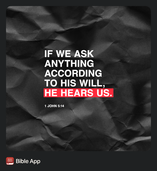 "And we are confident that he hears us whenever we ask for anything that pleases him. And since we know he hears us when we make our requests, we also know that he will give us what we ask for." –1 John 5:14-15 NLT