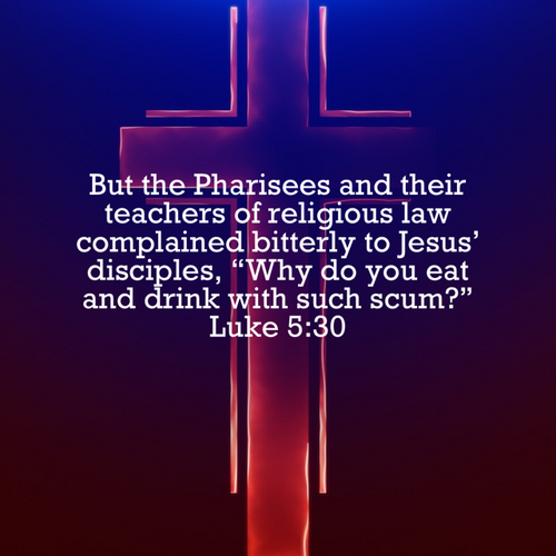 “Later, Levi held a banquet in his home with Jesus as the guest of honor. Many of Levi’s fellow tax collectors and other guests also ate with them. But the Pharisees and their teachers of religious law complained bitterly to Jesus’ disciples, ‘Why do you eat and drink with such scum?’” –Luke 5:29-30 NLT