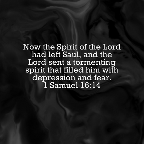 “Now the Spirit of the Lord had left Saul, and the Lord sent a tormenting spirit that filled him with depression and fear.” –1 Samuel 16:14 NLT