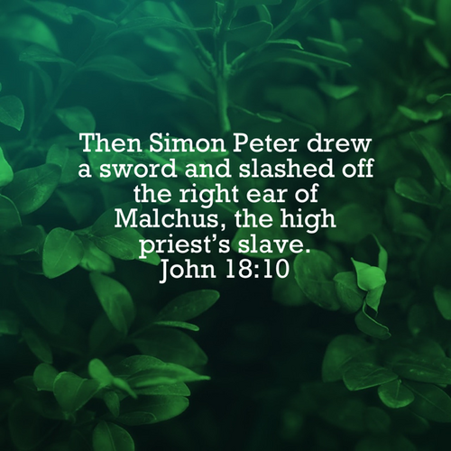"Then Simon Peter drew a sword and slashed off the right ear of Malchus, the high priest's slave. But Jesus said to Peter, 'Put your sword back into its sheath. Shall I not drink from the cup of suffering the Father has given me?'" –John 18:10-11 NLT