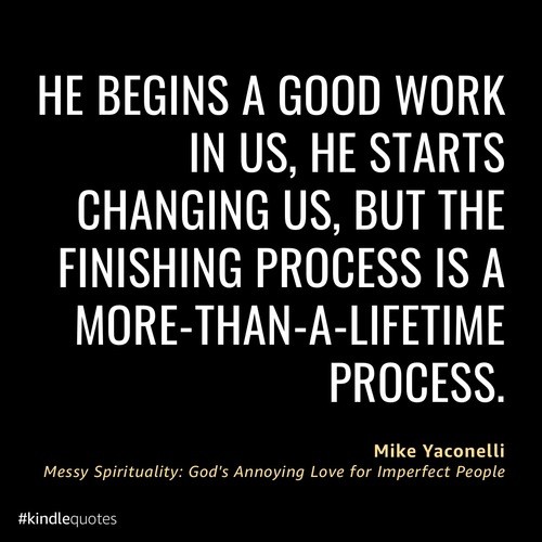 "He begins a good work in us, he starts changing us, but the finishing process is a more-than-a-lifetime process." (Messy Spirituality by Mike Yaconelli. p. 41)