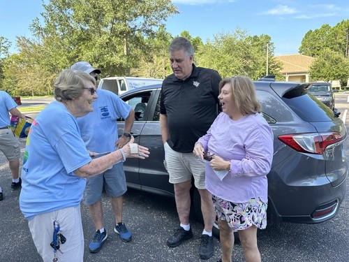 August 26, we participated in the 3rd parking lot food driving with Sacred Heart Catholic Church. This food drive was started to honor one of their members, Jack Graves, and has become one of the largest drives the Green Cove Food Pantry has.