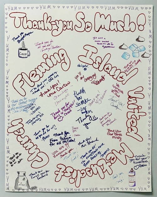 I'm thankful for Karen bringing her heart's desire to our Mission Team and bringing it to our new discipleship group, Boomers. After 5 months of providing small acts of kindness monthly, the teachers of Bannerman sent us the thank you pictured above. Here are some of the notes they wrote: