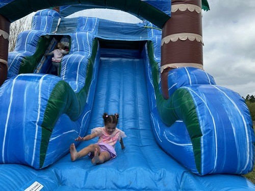 I loved watching the kids go down the slide. The weather was too cool to turn the water on, but that didn't slow them down. The adults had such a good time talking that we completely forgot to pull out the corn hole. I am sure deeper connections within the church family and new friends were made on this spring day.