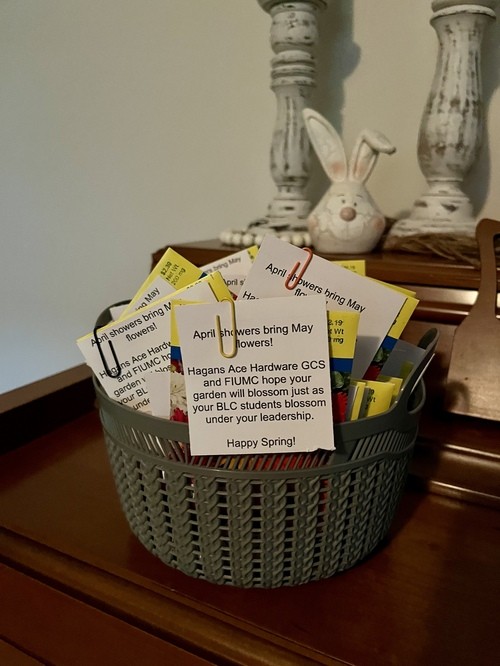 The Boomers met on April 2nd and prepared the monthly mailbox motivations for the Bannerman (BLC) faculty and staff. Hagan Ace Hardware in Green Cove donated flower seed packets. We attached notes to each packet and placed them in faculty and staff mailboxes (pictured above).
