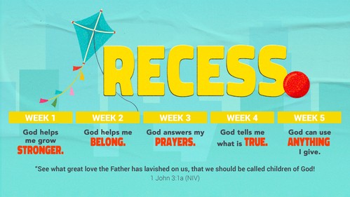 For a lot of us, recess is one of our favorite parts of the school day. We get to play dodgeball, hopscotch, or race our friends around the play area. Recess helps us to stay active so we can grow strong, but it also gives us a chance to grow in our relationships. In this five-week series, kids will discover through the stories in the books of Judges, Ruth, and 1 Samuel the unexpected ways God can help them grow. As they do, they’ll learn how God helps us grow stronger, helps us belong, answers our prayers, tells us what is true, and can use anything we give.