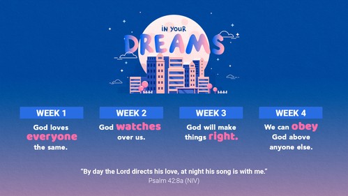 As the sun sets and you nod off the sleep, an entire nighttime world awakens. Along with our dreams and slumber, the night can also mean shadows and unfamiliar sounds. Who makes us feel safe when the world is dark and scary? In this four-week series based on the life of Joseph, we’ll learn about how God watches over us and loves everyone the same. No matter what we go through, God will make things right, which is why we can obey God above anyone else.